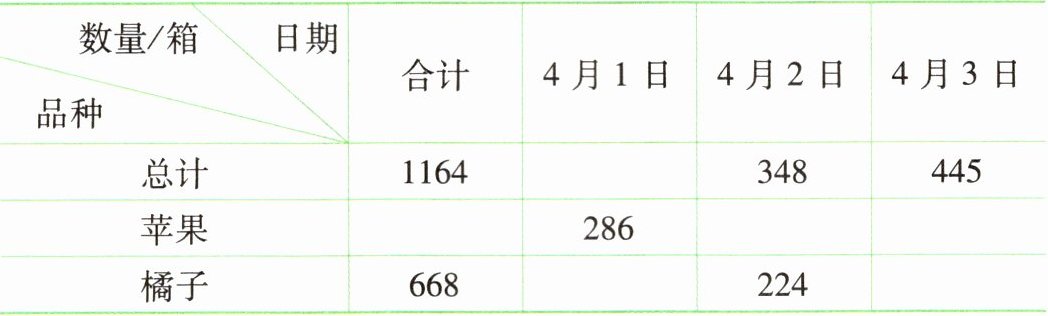 水果市场4月1日~3日苹果和橘子的销售量统计表