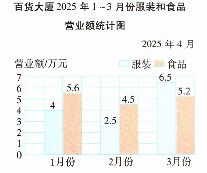 3 下面是百货大厦 2025 年 1~3 月份服装和食品营业额统计图。