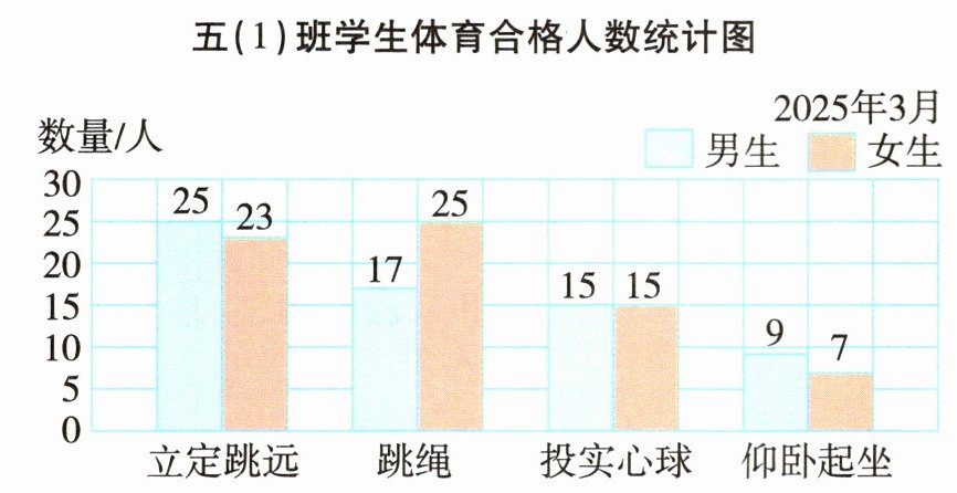 (1)女生合格人数最多的项目是(