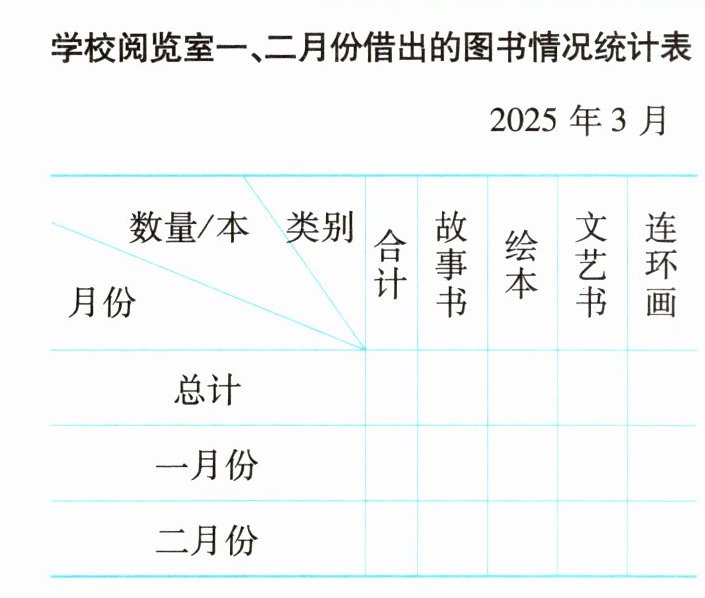 1 学校阅览室一、二月份借出的图书情况如下: