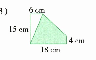 (3)$15× 6÷ 2+(4+15)× (18-6)÷ 2=159(cm^2)$