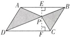 解析 如图,过点P作平行四边形的高,两个空白三角形的面积之和为AB×EP÷2+CD×PF÷2=AB×(EP+PF)÷2=AB×EF÷2,所以空白三角形面积之和与阴影三角形面积之和相等,都等于50÷2=25(平方厘米)。