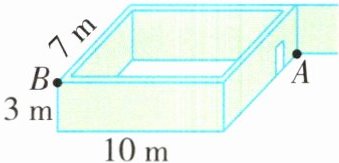 1 出发前,出于安全考虑,轩轩的爸爸打算在院子里的B处安装一个摄像头。从电源A处沿墙壁边线(水平或竖直)拉一根电线到B处(如图),至少需要多长的电线?先在图上画出线路,再计算。(不考虑墙壁厚度)