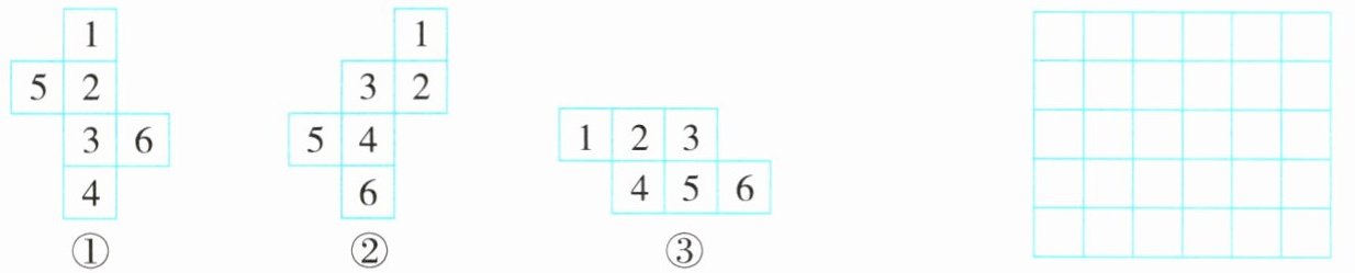 (1)图( )不是正方体的平面展开图,请移动此图中的一个正方形,使该图是正方体的平面展开图。(在方格纸上画出来,并标上数字)