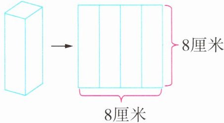 4 (名校期末真题)如图,一个底面是正方形的长方体,将它的侧面展开后正好是一个边长为 8 厘米的正方形,这个长方体的表面积是多少平方厘米?
