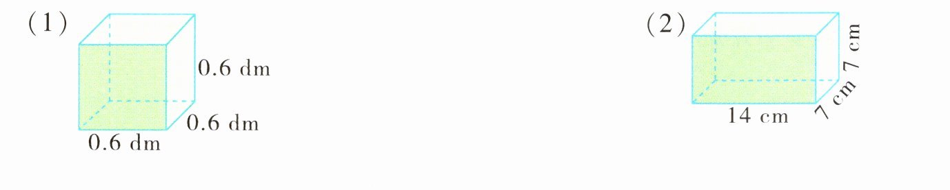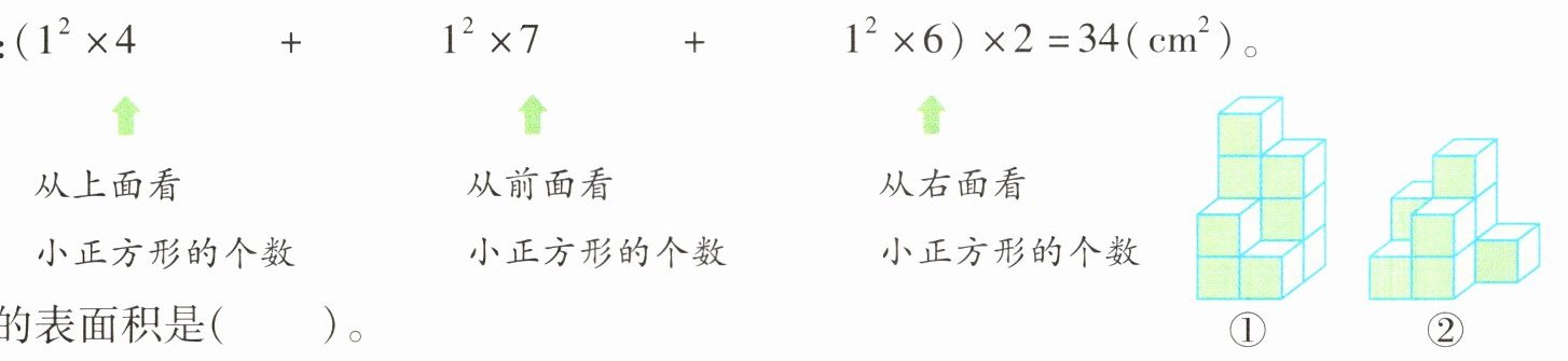 5 (新题型)如图,两个立体图形都是由棱长为 1 cm 的小正方体搭成的。立体图形①的表面积可以这样计算: