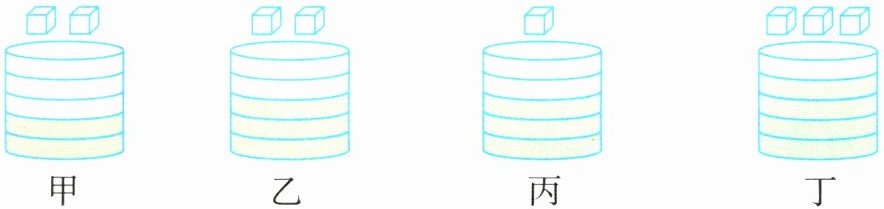3 (易错题·方法误用)有四个完全相同的容器,里面的水量如下图中涂色部分所示。把容器上方的方糖加入水中(方糖的大小、甜度一样),完全溶解后,哪个容器中的水最甜? 请说明你的判断理由。