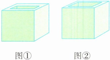 4 这两个容器的容积不相等。因为虽然从外面量棱长都为5厘米,但是题图①中的容器壁的厚度大于题图②中的容器壁的厚度,所以这两个容器的容积不相等。