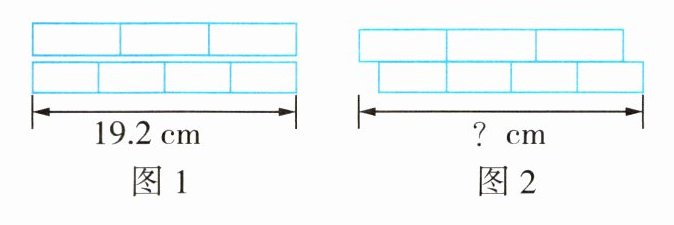 8 (新题型)小明先将两张同样长的长方形卡片分别等分成3份和4份(如图1所示),然后进行了重新拼摆(如图2所示),拼摆后的图形长多少厘米?