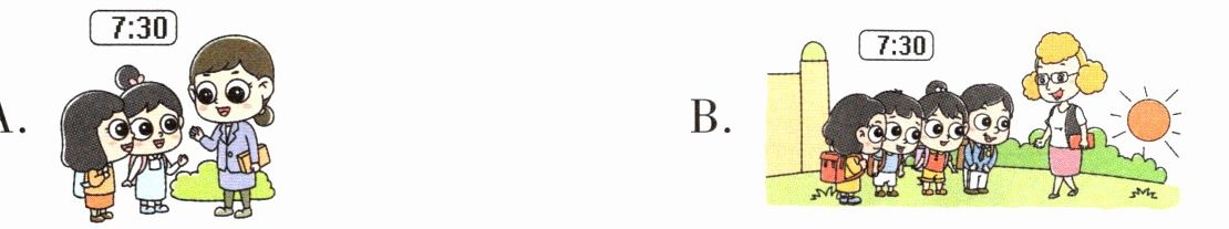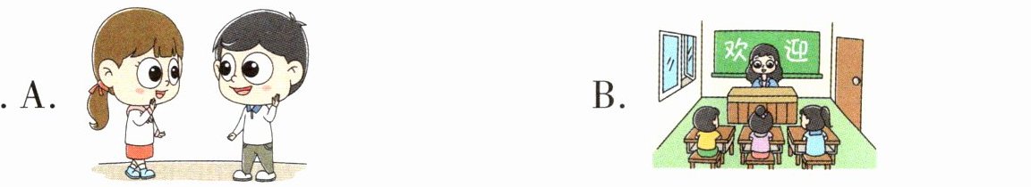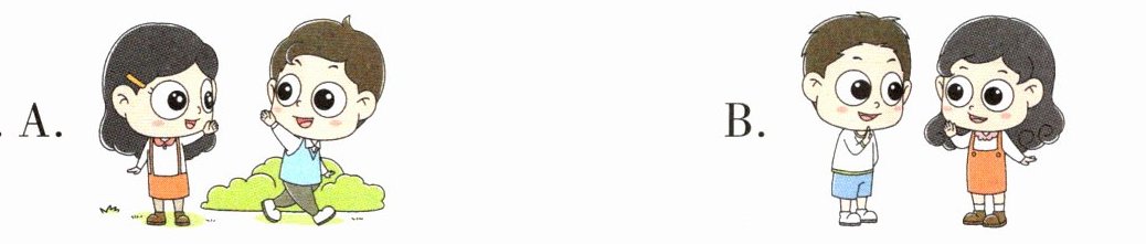 二、校园里,同学们和老师们见面都有礼貌地打招呼。听录音,选择与所听内容相符的图片。
