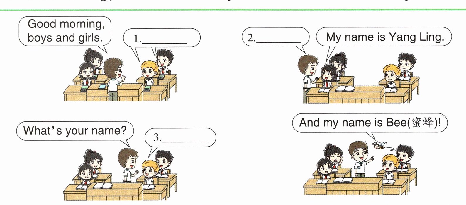 Yang Ling is a 3. ______. Wang Bing is a 4. ______. Liu Tao is a boy 5. ______. Mr Green is a 6. ______. He says, "Good morning."