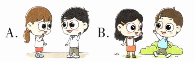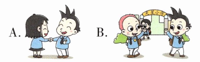 二、配对小达人。读一读,选择与对话意思相符的图片。