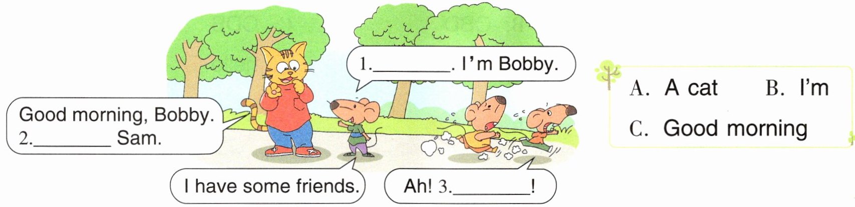 任务一:1. C 2. D 3. A 4. B 任务二:C 解析 "Hello!" "Hi!" "Good morning!"都是早上打招呼时的用语。警示 "Hello!" "Hi!"可以用在任何时间跟人们打招呼。