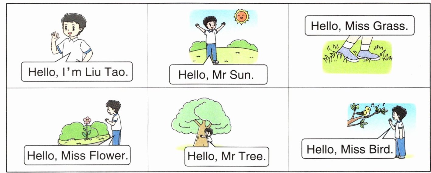 | Hello, I'm Liu Tao. | Hello, Mr Sun. | Hello, Miss Grass. |