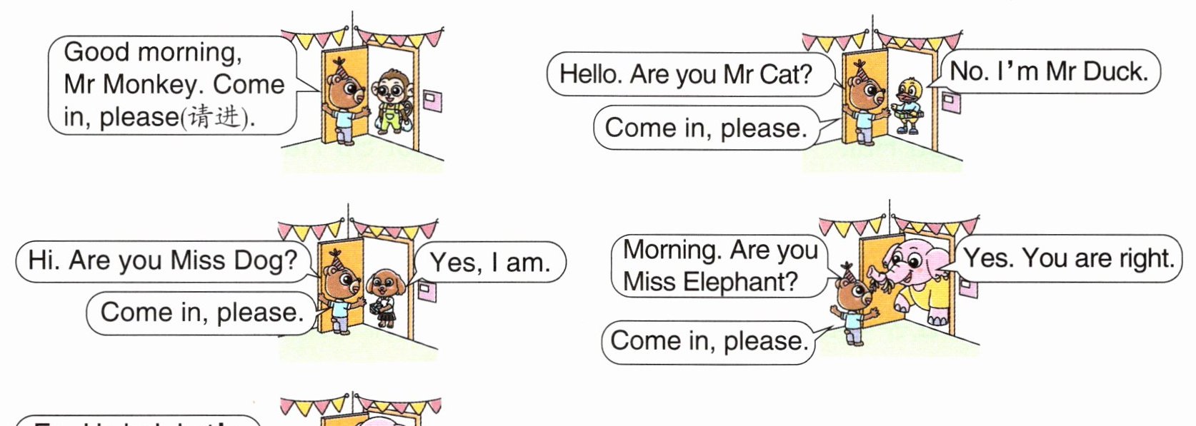 六、(新语篇)绘本分享。阅读绘本故事,从方框中选择相应的自我介绍。