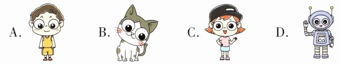 五、(新题型)第二小组的 Betty 带来的是"朋友猜猜猜"节目。根据描述,选出对应的照片,将序号填在题前括号内。