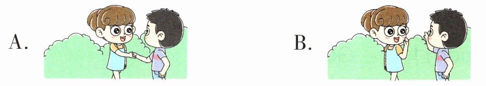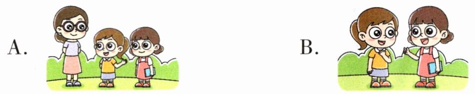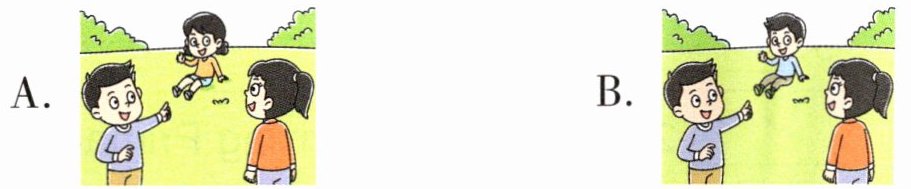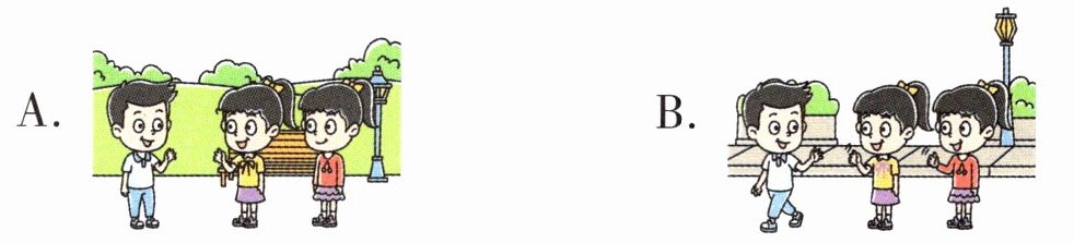 四、公园里传来阵阵交谈声。读一读,选择与句子或对话相符的图片。