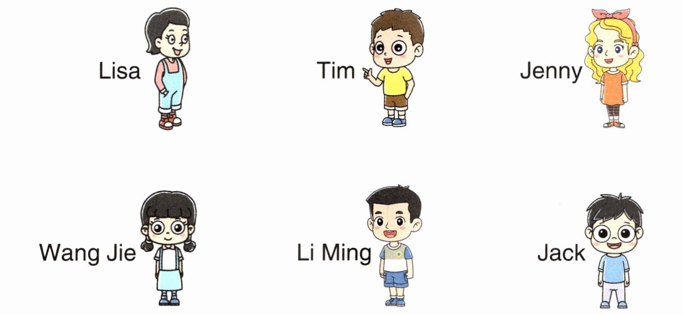 二、Lisa 在公园认识了哪些人?听录音,根据所听内容连线,为他们找到各自的朋友。