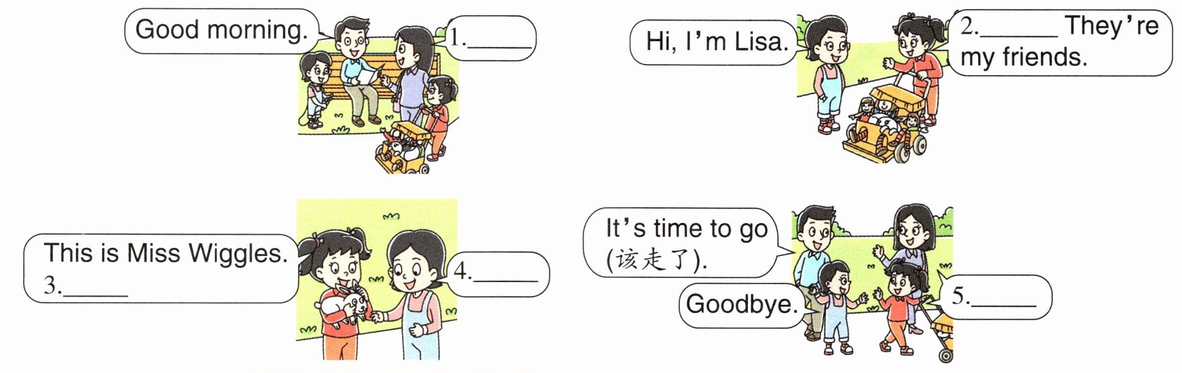 五、(新语篇)Lisa 和爸爸在公园里还遇到了谁呢?从方框中选择合适的选项补全对话。