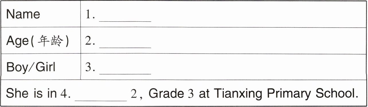|She is in 4. |2, Grade 3 at Tianxing Primary School.|