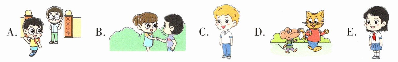三、第三关:图文配对。读一读,选择与句子或对话意思相符的图片。