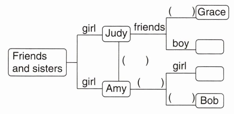 Amy是Judy的姐姐,她的朋友有Bella(女孩)和Bob(男孩)。