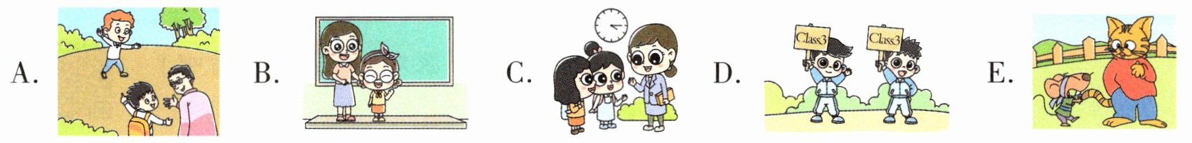 任务二:按事情发展的先后顺序用 1—5 给图片排序,将序号填在图片下方的括号里。