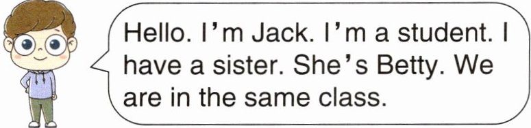 Hello. I'm Jack. I'm a student. I have a sister. She's Betty. We are in the same class.