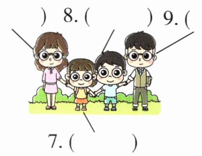 四、Nick 给 Chen Jie 看自己的家庭照片。根据家庭照片,从方框中选择合适的选项。