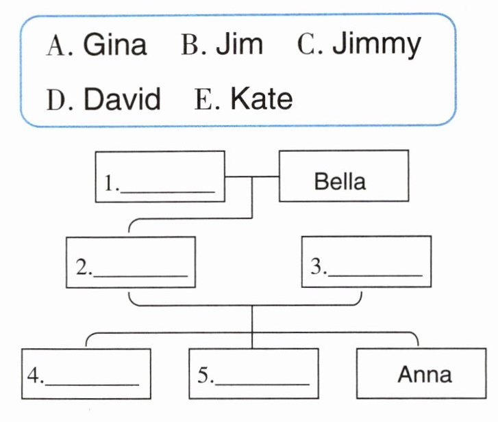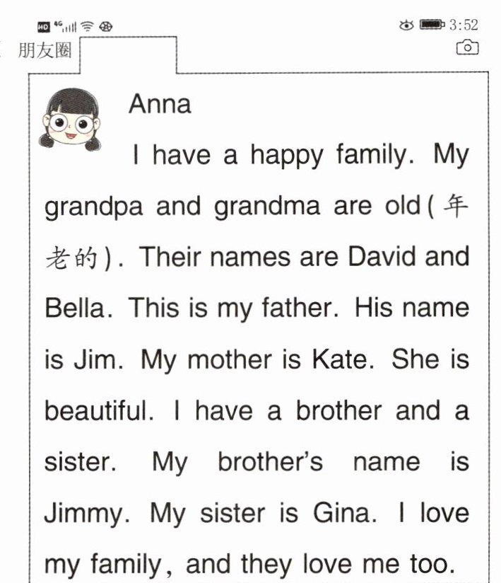 一、(新题型)阅读 Anna 的朋友圈,选择合适的选项完成家谱。