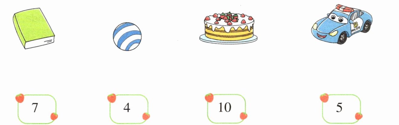 四、Mike 体验的是售货员,他正为顾客挑选商品。选择与句子意思相符的图片,并在□内写出其数量。