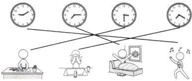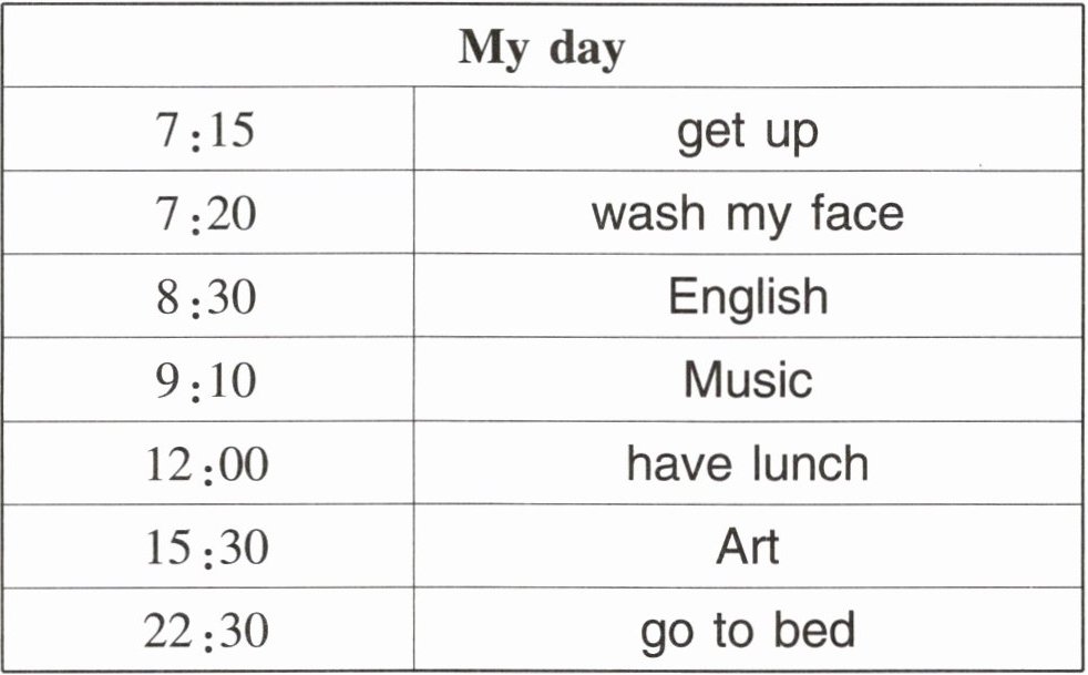 六、(新情境)Jake 分享了自己一天的安排。根据时间表,完成下列任务。