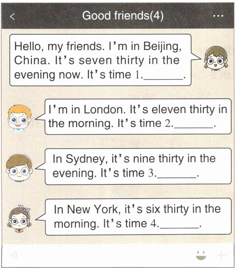 六、(新语篇) 晚上,Lily 和来自不同国家的朋友聊天。阅读微信聊天记录,完成下列任务。