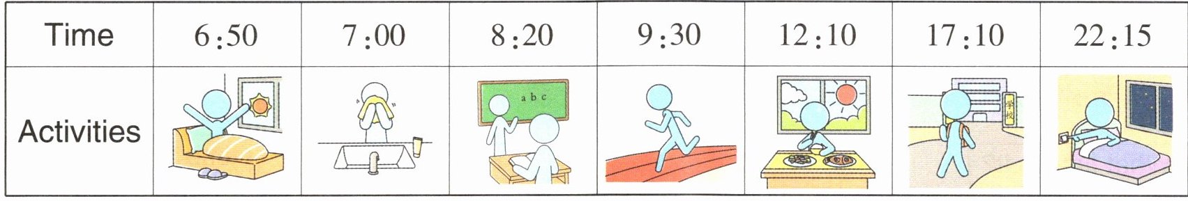 |Time|6:50|7:00|8:20|9:30|12:10|17:10|22:15|