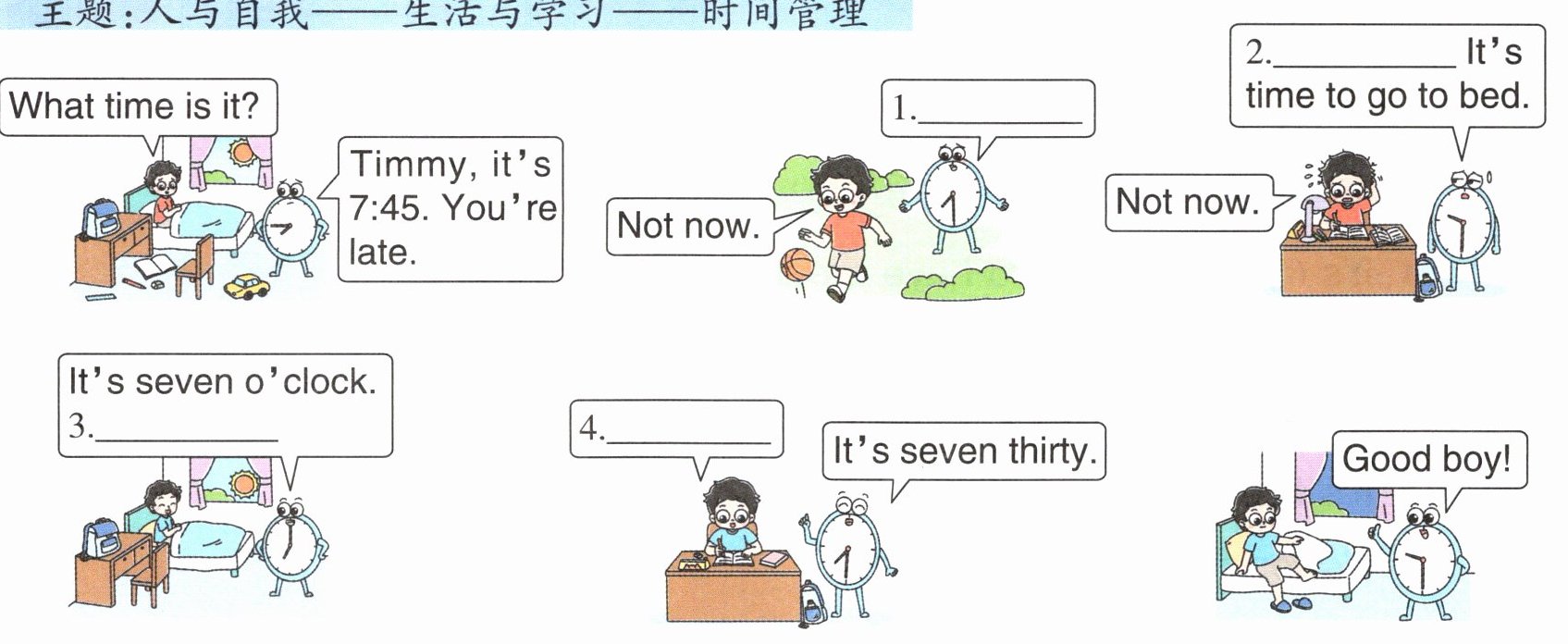 ( )2. It's nine thirty. Blue Timmy goes to bed.