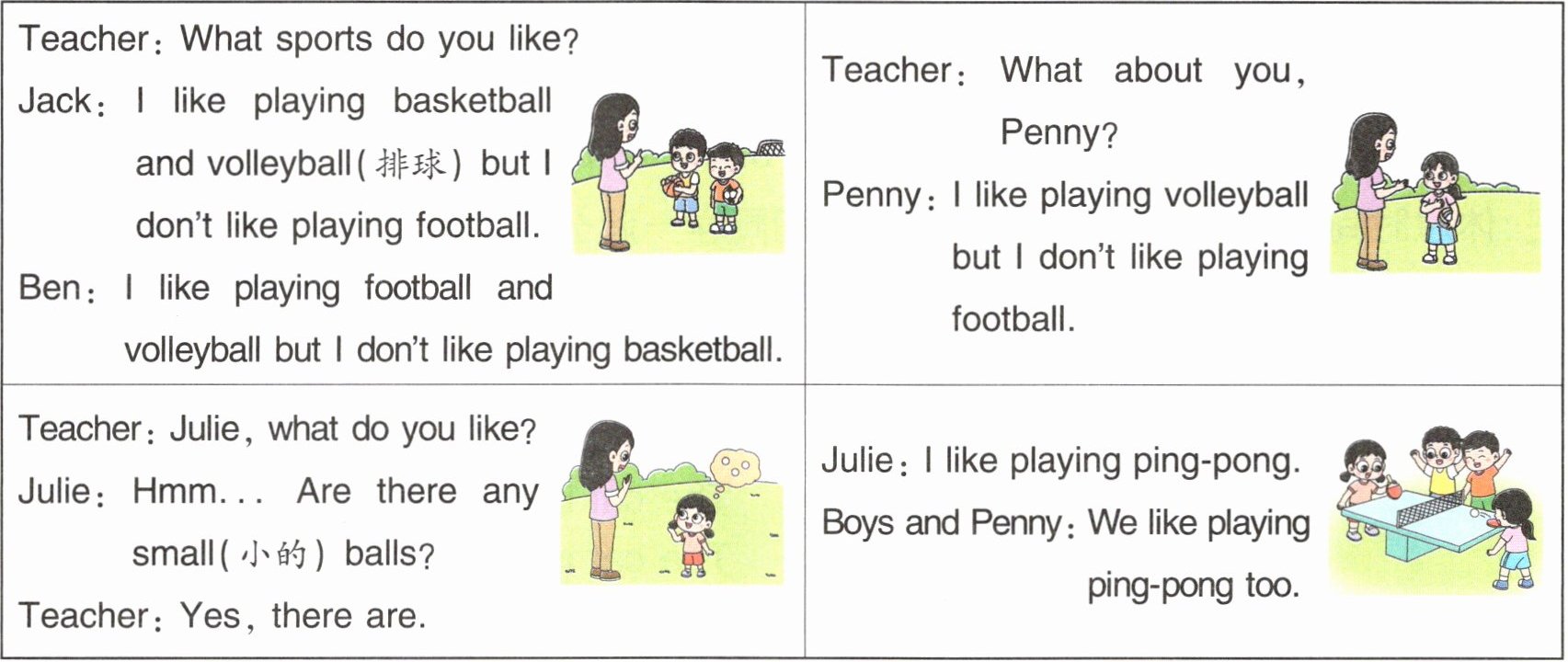 | Teacher: What sports do you like?