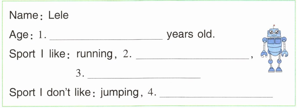二、机器人 Lele 也想加入体育社团,他进行了自我介绍。听短文,根据所听内容补全卡片信息。🎧