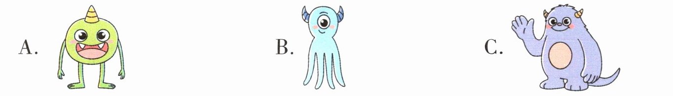 六、奇异馆里,三个小怪兽吸引了Liu Tao 的眼球。根据小怪兽的自我介绍,选择对应的图片。