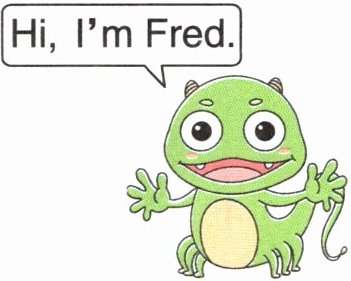 四、(新情境)大家围坐在一个有趣的玩具木偶旁,他正在作自我介绍呢。根据图片提示填空。