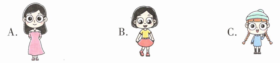 1. A 解析 根据"She is tall and thin. Her hair is long, and her eyes are big and bright"可知,Cici 是一个又高又瘦的女孩,而且她的头发长,眼睛又大又有神。故 A 项符合题意。 2. B 解析 根据"She has a little brown dog. It has long ears and a short tail"可知,Cici 的狗有长耳朵和一条短尾巴。故选 B。 3. B 解析 根据画线词后的"she often makes me laugh(笑)"可知,她经常逗"我"笑,由此可推测,humorous 意为"幽默的"。 4. C 解析 题干句意:在生日派对上,Cici 可能会送 Su Hai 什么礼物?根据短文内容可知,Cici 和 Su Hai 放学后经常画画,并且她们俩都很喜欢小动物,由此可以推测,Cici 可能会送 Su Hai 一张画有小狗的画。