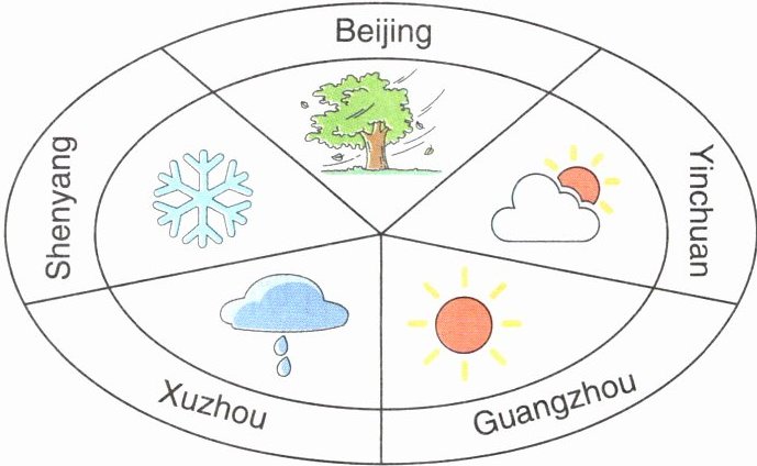 任务一:1. cloudy and windy 2. cool and rainy 3. hot and sunny 任务二:1. F 2. T 3. T