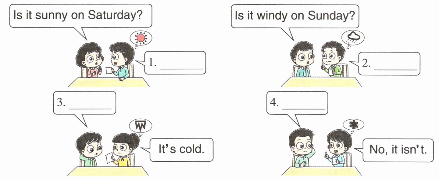 1.rainy 2.cloudy 3.sunny 4.windy; kite