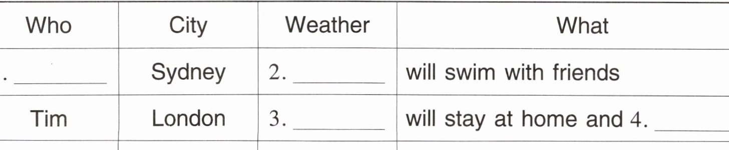| 1.______ | Sydney | 2.______ | will swim with friends |