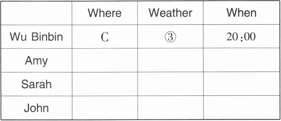 2. F 解析 根据 John 所说的"I fly a kite with my father in the afternoon"可知,他下午和爸爸放风筝了。故本题表述错误。