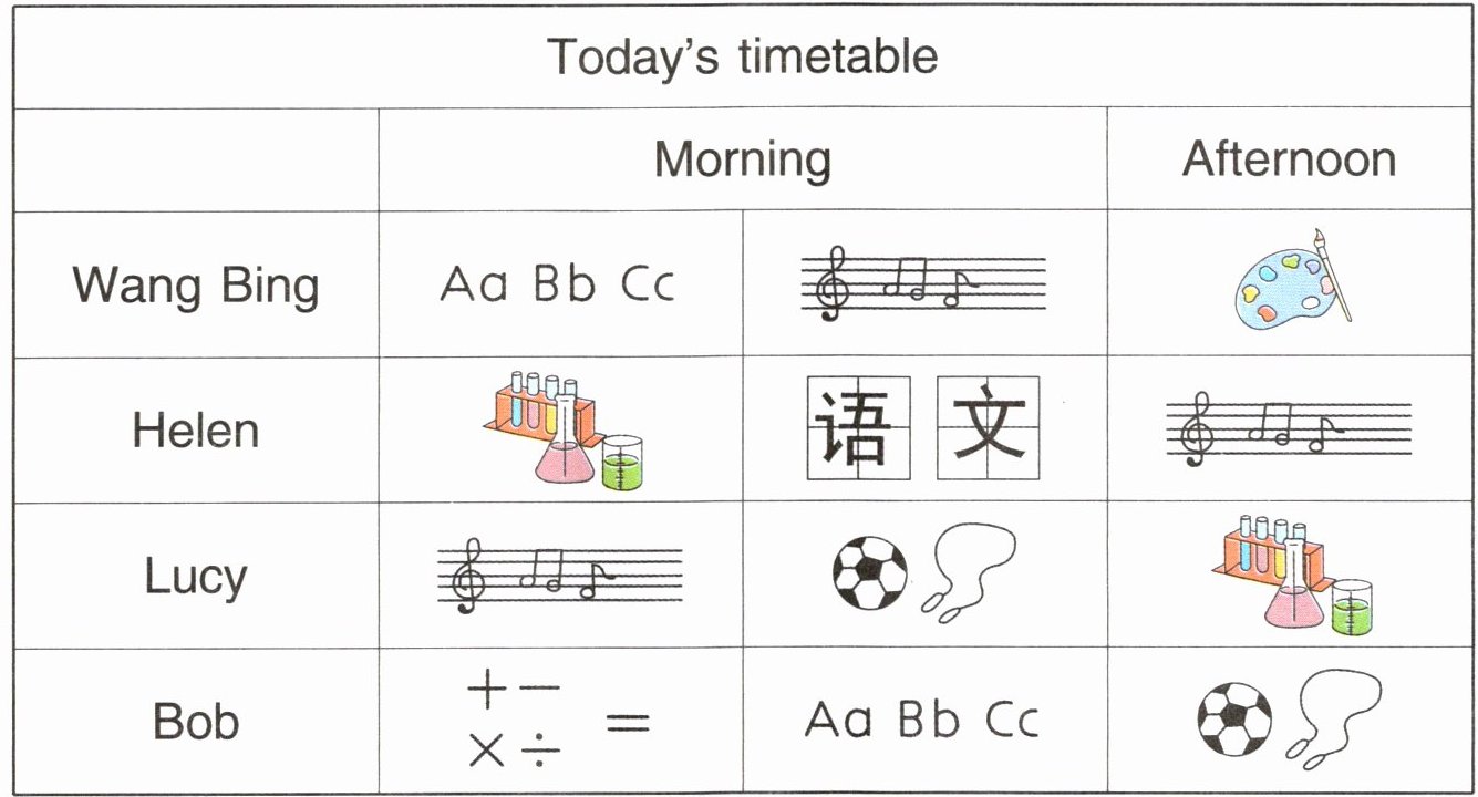 六、I can recognize. 辨别趣比拼。选择合适的内容补全句子或对话。