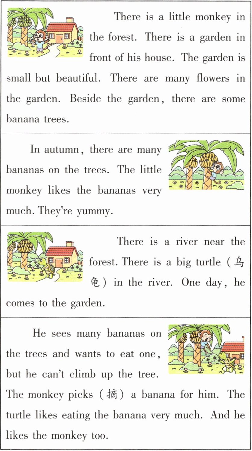 ( )4. The turtle wants to eat a banana and climbs up the tree.