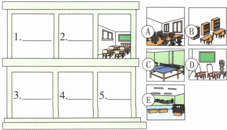四、(新题型)阅读短文,完成教学楼的布局图,将序号填在相应的横线上。