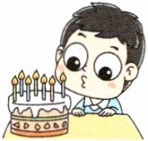 1. 第一幅图是一个男孩在吹七根蜡烛,问题是询问年龄,所以应填“years old”。