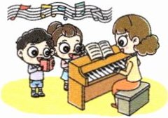 2. 第二幅图是两个孩子在弹钢琴,问题是询问喜欢的科目,主语是复数,一般现在时中助动词用“do”,回答是“他们喜欢音乐”,主语是“they”,动词用“like”。