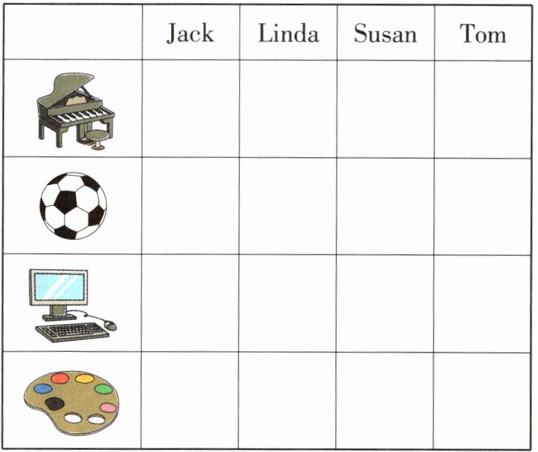 | 钢琴 | √(假设听力中提到Jack有钢琴) | | | |